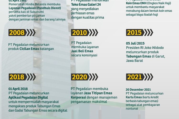 Dimulai pada tahun 1995, Pegadaian mendirikan Toko Emas Galeri 24 yang menyediakan perhiasan emas dengan desain eksklusif dan kualitas prima. Dilanjutkan pada tahun 1999 Pegadaian menerbitkan Koin Emas ONH sebagai tabungan Ongkos Naik Haji (ONH). Sebagaimana diketahui, ongkos naik haji selalu mengalami kenaikan dari tahun ke tahun. Dengan menabung emas maka kenaikan ONH ini dapat teratasi oleh kenaikan harga emas.